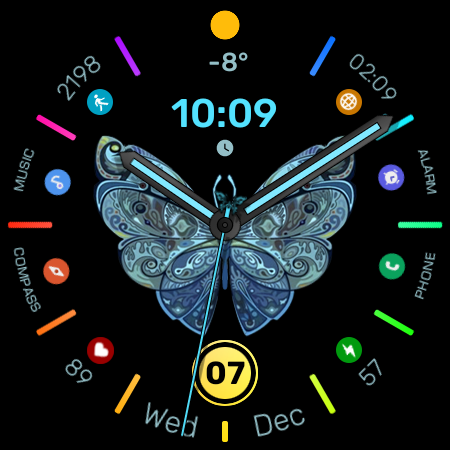 | Author: WFProduction by A.Kovalev | File Name: com.watchfacestudio.WFP305_Butterfly_modern | Category: Personalization |